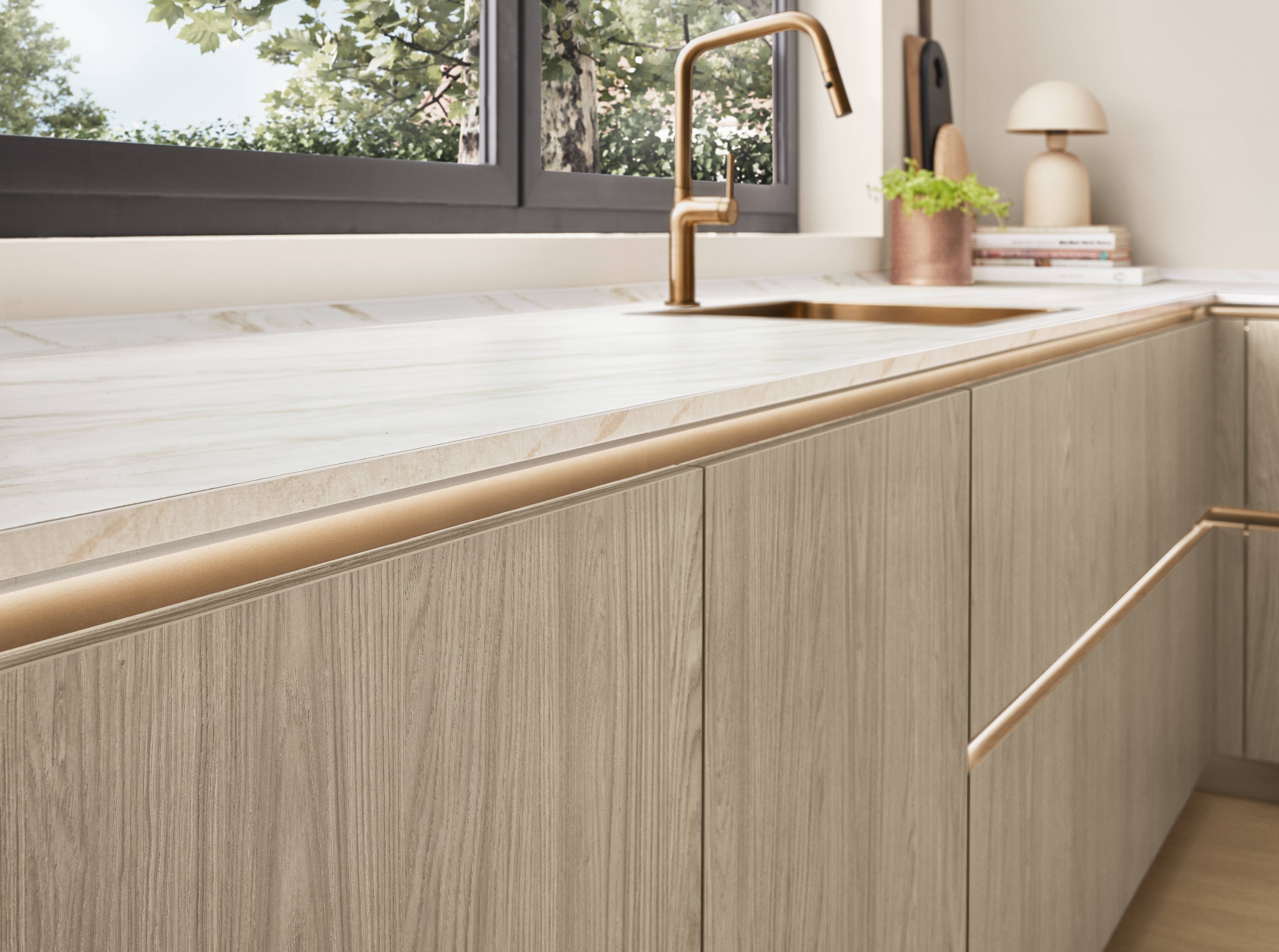 Holzoptiken sind die zentralen Elemente für die von der Natur inspirierten Küche VILLACH_WIEN von PAUL LEVÍN und schaffen Behaglichkeit, die zu jedem Einrichtungsstil passt. Materialien wie Marmor oder Granit bringen gemeinsam mit den facettenreichen Holzdekoren die Schönheit der Natur in Ihren Alltag.