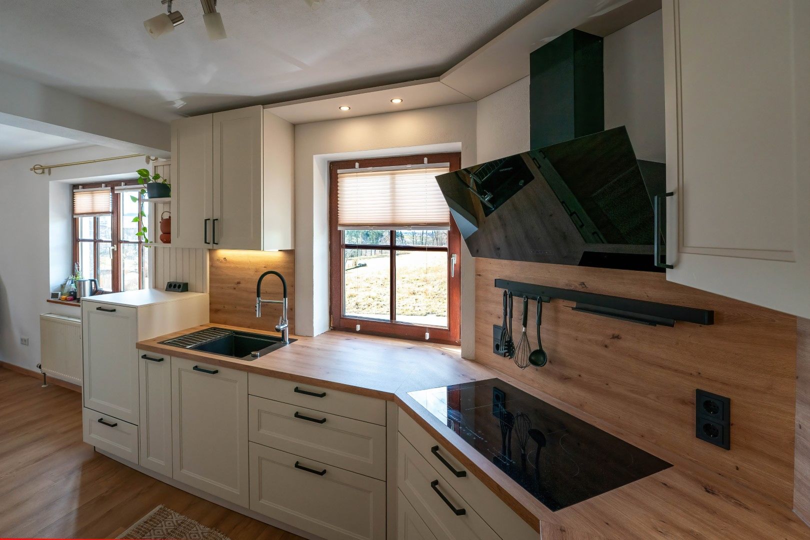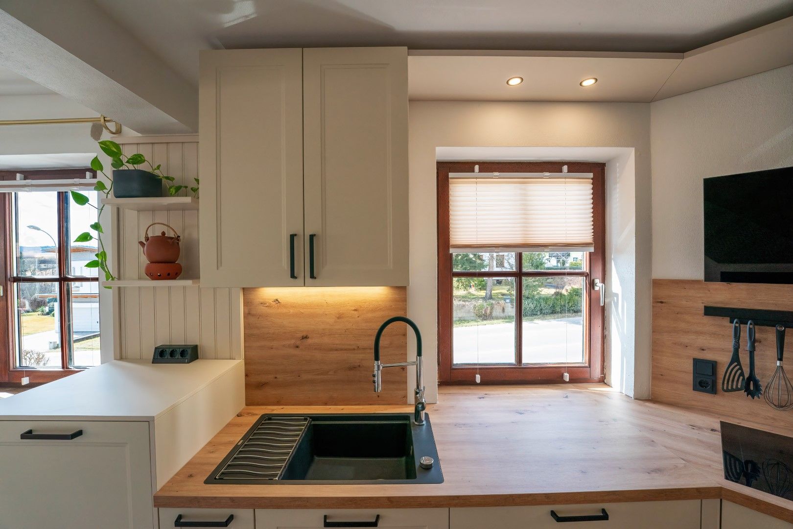 Auch auf begrenztem Raum lässt sich eine stilvolle Landhausküche verwirklichen. Der Wunsch unserer Kundschaft: eine moderne Interpretation dieses zeitlosen Stils – für uns von Möbel Handl eine schöne Herausforderung.