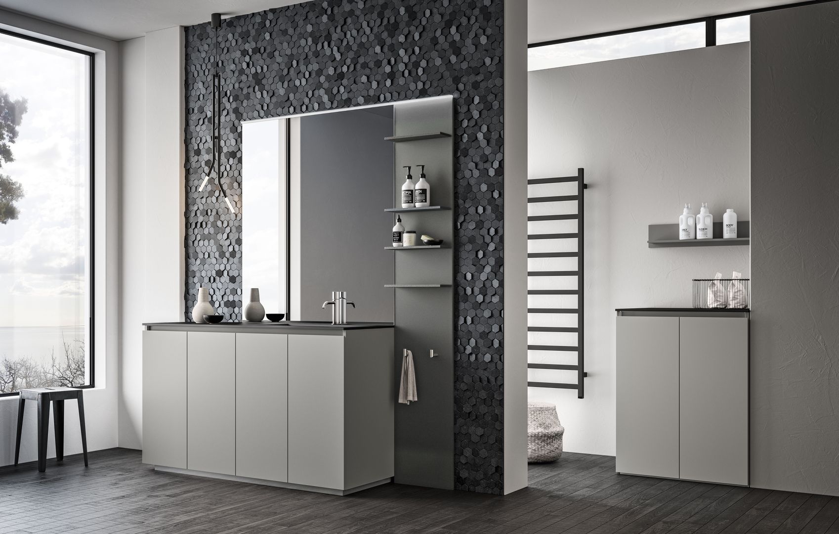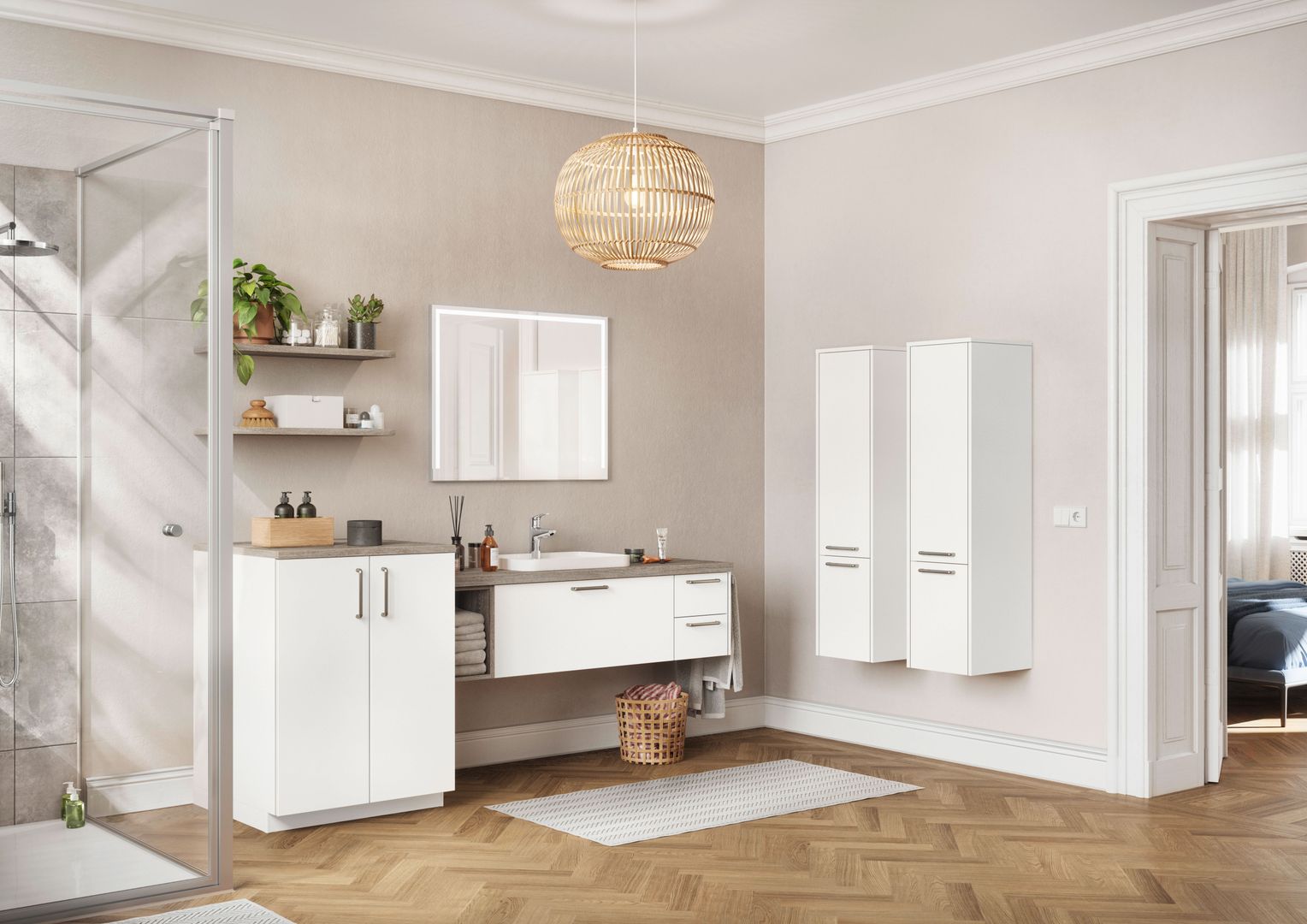 Unterschiedlichste Möglichkeiten prägen hier den Stil und das Ambiente. Hier können Sie Ihrer Kreativität freien Lauf lassen und aus einer breiten Palette wählen: Von Echtholz bis zu großformatigen Fliesen und vom Wandputz bis zu Natursteinen und Glas.