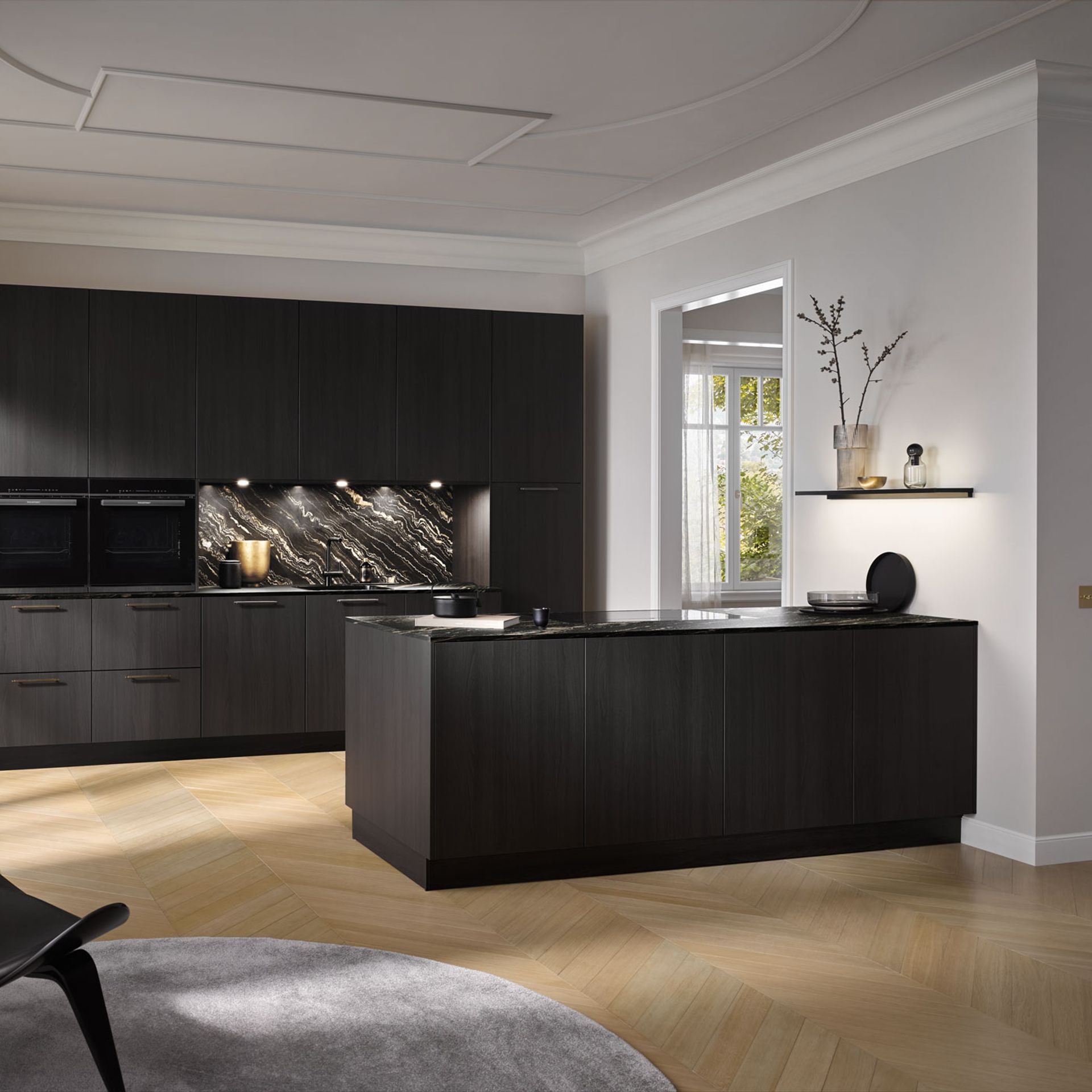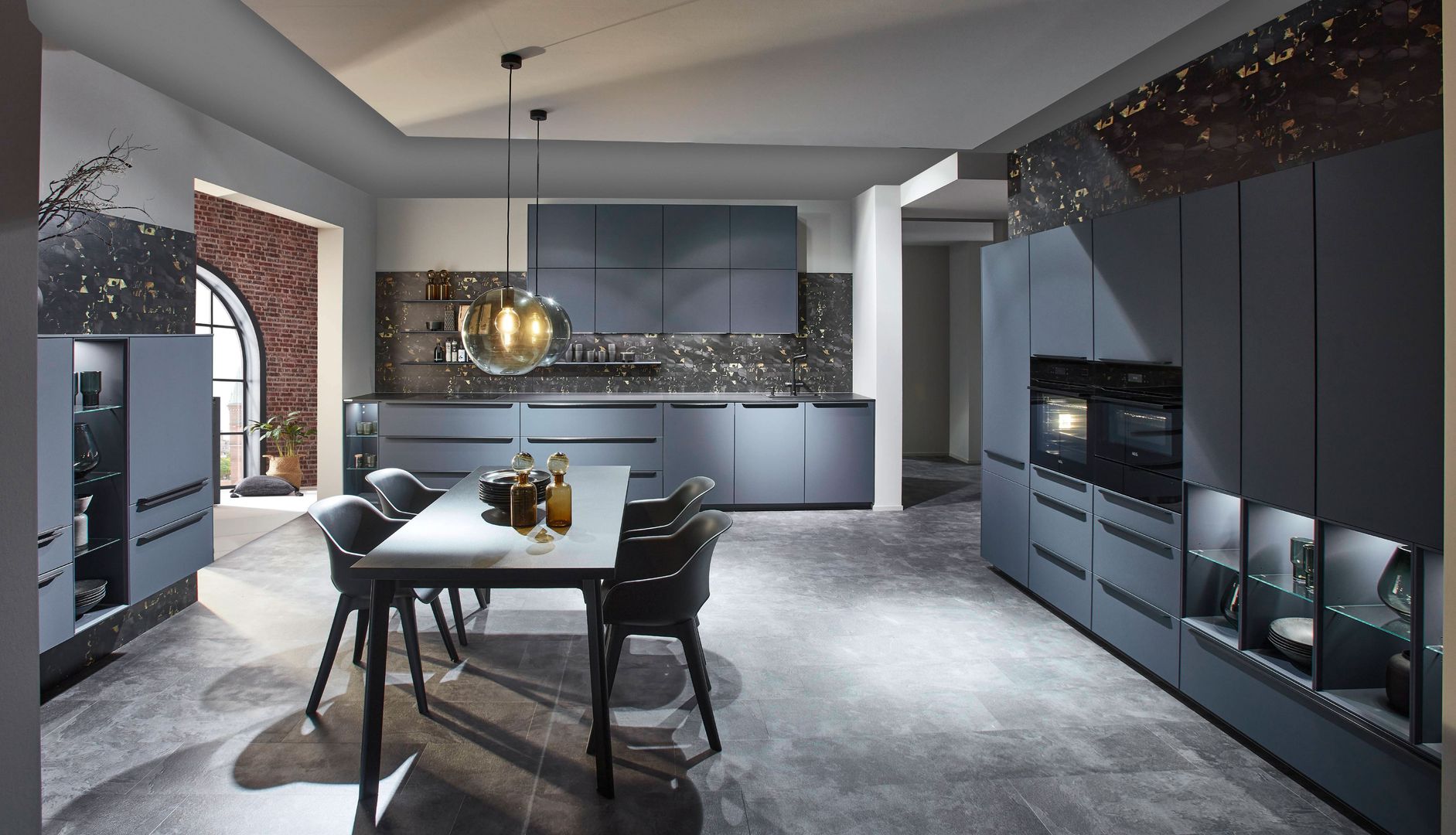 Wie sieht die Küche in den 2020-er Jahren aus? Eines ist klar: Sie ist offen für Neues. Offenes Wohnen ist so aktuell wie nie zuvor, und die einzelnen Lebensbereiche verschwimmen. In der Küche wird gearbeitet, gustiert und gekostet, auch gegessen, gechillt und verweilt. Das nicht mehr so wie vor einigen Jahren meist in klinischem Weiß, sondern in eher dunkleren Tönen. Dabei reicht der Bogen von Anthrazit über Mitternachtsblau und Tannengrün bis zu dunklen Hölzern, in die sich immer wieder ein neuer, leichter Rosé Ton mischt und für frischen Wind sorgt. Diese Farbwelt ist oft matt, in Anti-Fingerprint Optik, meist grifflos und mit vielen praktischen Details gespickt. Es gibt unzählige Varianten, um typische Küchenhelfer verschwinden zu lassen, die dann mit einem Handgriff sofort parat sind. Die Zeiten, in denen die Küche offensichtlich mit ihren technischen Hilfsmitteln geprahlt hat, sind Schnee von gestern. Alle Linien sind klar und puristisch. Die Küche beeindruckt als stylishes Designmöbel und Blickfang zugleich.