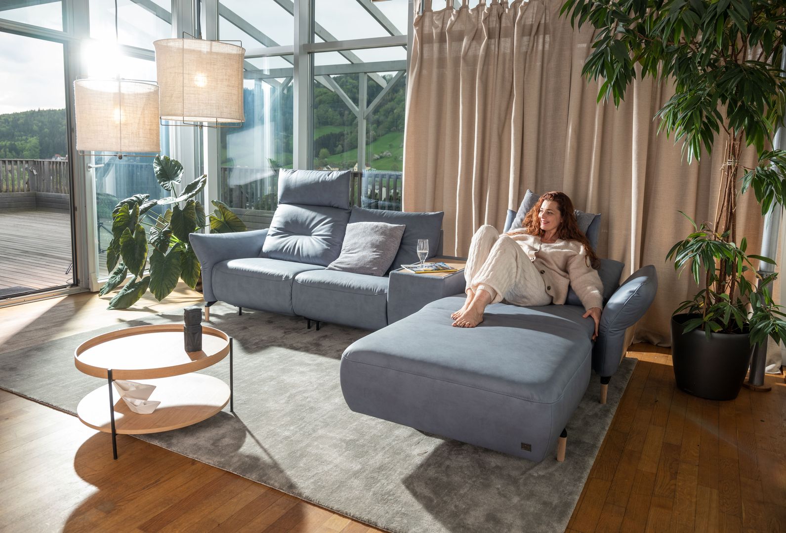 Couch Potatoes aufgepasst. Es gibt Innovationen am Lümmelsektor. Je mehr Zeit man am Sofa verbringt, umso mehr rückt auch die umfassende Qualität in den Vordergrund. Deshalb wird in Sachen Sofaqualität auch etwas tiefer in die Tasche gegriffen, um so bequem wie möglich zu gestalten. Besonders entspannend sind die neuen Sofas mit Sitztiefen-Verstellung. Dabei wird die Rückenlehne manuell oder elektrisch nach vorne geschoben, um aus der gemütlichen Liegeposition in einen aufrechteren Sitz kommen zu können. Die Kopfteile sind ebenso oft verstellbar.